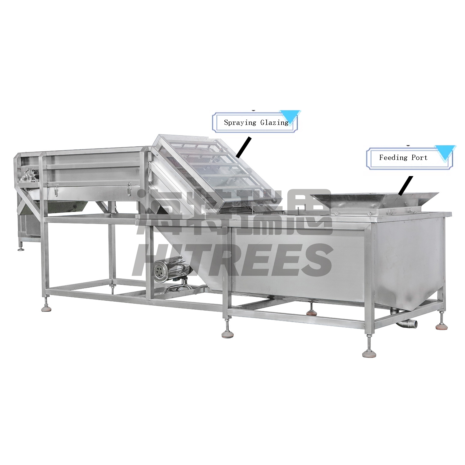 Ice glazing machine is made of food grade stainless steel. It can fully meet food hygiene standard.
