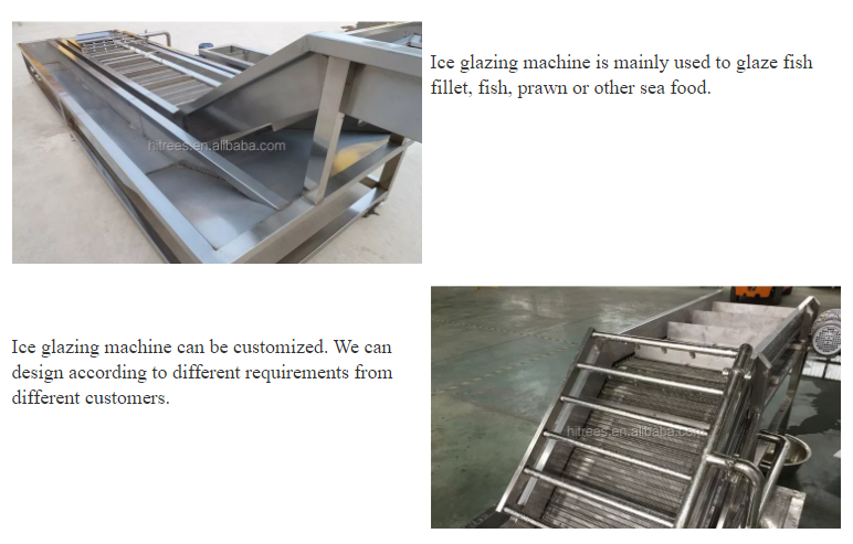 Ice glazing machine is mainly used to glaze fish fillet, fish, prawn, shrimp or other seafood.